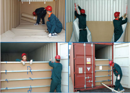 海運(yùn)集裝箱鋪液袋操作流程:1、集裝箱檢查,鋪裝液袋前必須先打掃海運(yùn)集裝箱,檢查地板和箱壁無(wú)尖銳物、沒有嚴(yán)重的變形或較大的修理、箱頂有無(wú)破損或滲漏。2、安裝固定柱,海運(yùn)集裝箱箱壁兩側(cè)各安裝方管,用扎帶扎緊。3、鋪設(shè)保護(hù)層:用干燥整潔的瓦楞紙鋪滿集裝箱底板和海運(yùn)集裝箱的四周的箱壁 1/2 面積以上。4、放置集裝液袋:集裝袋在放置到集裝箱以前外包裝必須完好,檢查液袋閥門完好邊緣是否破損,不要將裸露的集裝袋直接放置在未經(jīng)鋪墊的集裝箱內(nèi)。最后展開液袋:一般液袋包裝時(shí)已經(jīng)將左右兩側(cè)折疊好,只要展開即可。