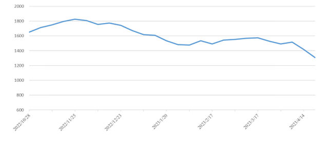市場需求偏弱,本期(2023年4月15日至4月21日)中國內(nèi)貿(mào)集裝箱運價指數(shù)持續(xù)下跌